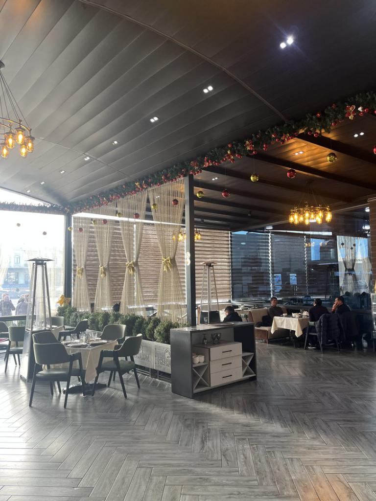 Пространство ресторана сочетает внутренний зал и открытую зону, что позволяет выбрать формат отдыха в зависимости от погоды и настроения. Здесь удобно проводить время с семьей, встречаться с близкими и наслаждаться неспешным ритмом отдыха.